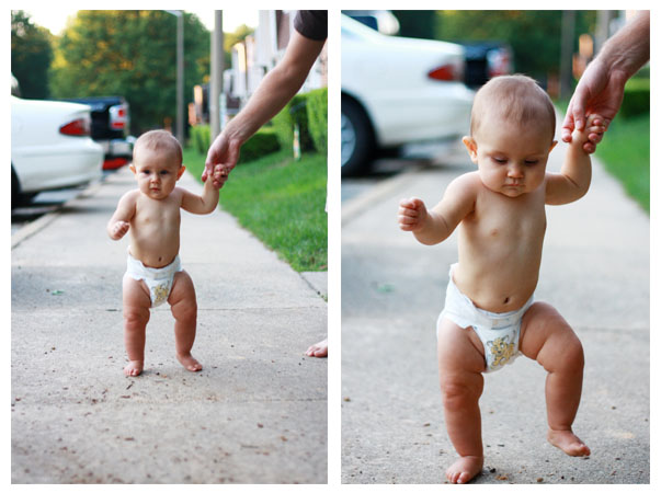 | This is all Sadie wants to do all day long: walk, walk, walk. We borrowed a little push walker from some friends and it is so funny to watch her push it up and down the hall and living room. She is getting so close to walking by herself. She thinks she is so cool when she walks. |