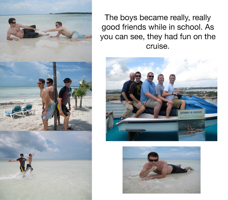 While in Virginia we made some great, life-long friends. We decided that when the boys finished school that we would all go on a big good bye cruise. We cruised to Nassau, Coco Cay and Key West. We had lots of fun eating, snorkeling, swimming with sharks, playing sardines on a huge ship, dancing, karaoke, mafia, kayaking and lots of goofing off. We miss you guys so much. When's the next cruise?